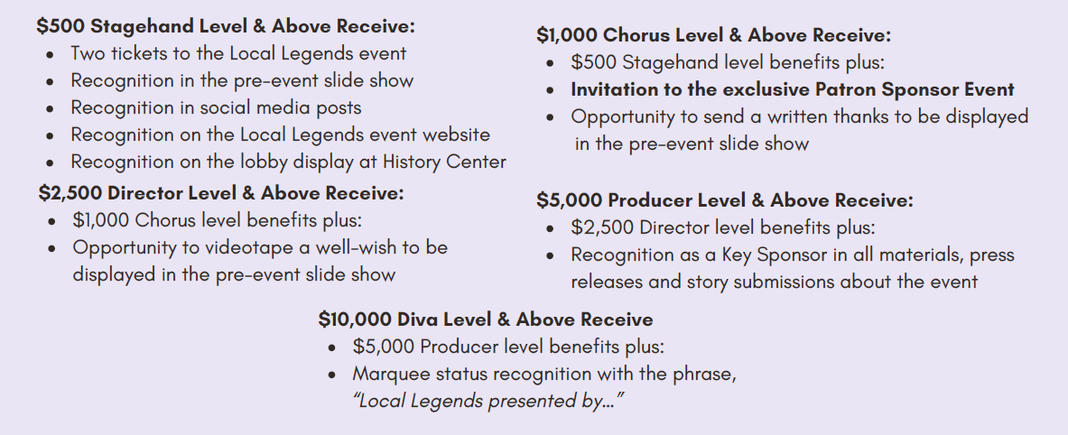 Local Legends Patron Sponsor Roll Call